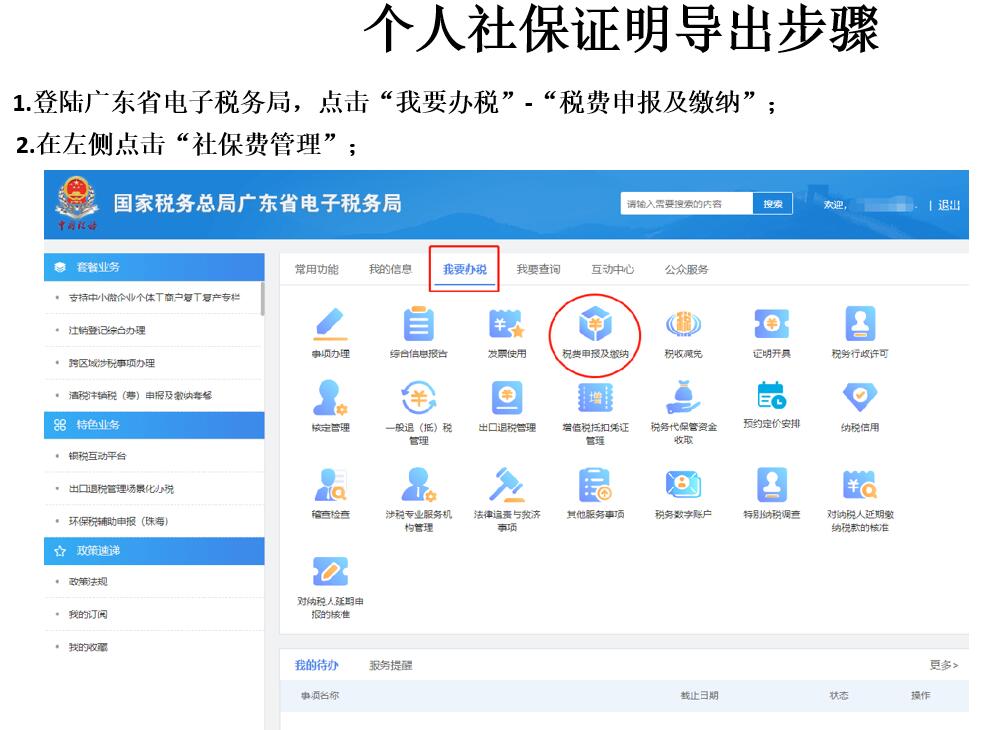 答:非常简单:登陆广东省电子税务局,点击“我要办税”-“税费申报及缴纳”;.在左侧点击“社保费管理”